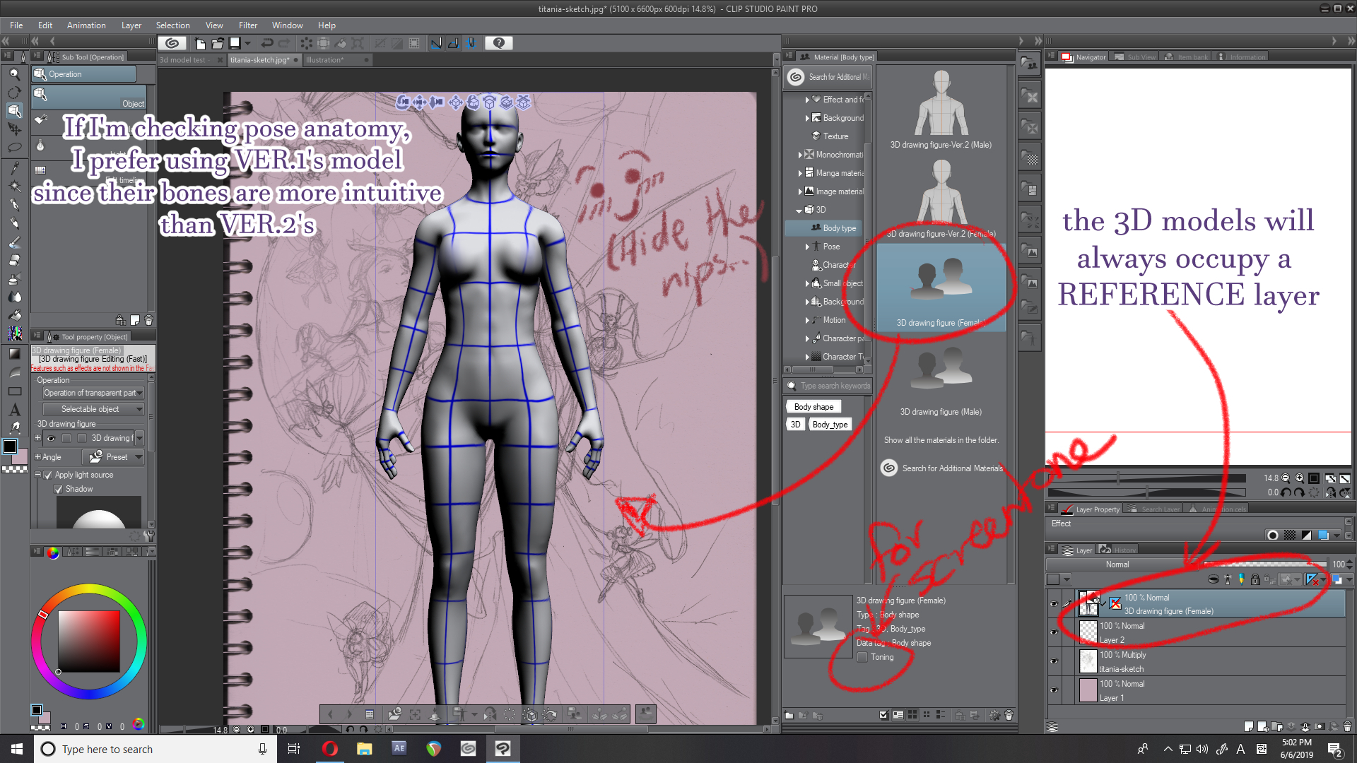 If you are a beginner draftsman, the 3d mannequin will come in handy. Then just drag what you want to the canvas to place it and then you pose it by dragging the limbs and praying double click works to lock it. 3d in clip studio paint